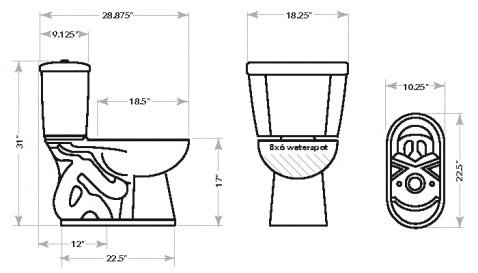 Dimensions (approx.) | Bowl: 29″ L x 15″ W x 16.5″ H; Tank: 17.75″ W x 9.75″ D x 14″ H |